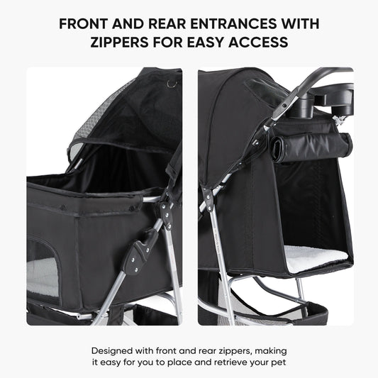Dog Stroller, Pet Travel Folding Carrier with Storage Basket for Cat/Dog, 3 Wheels, Black